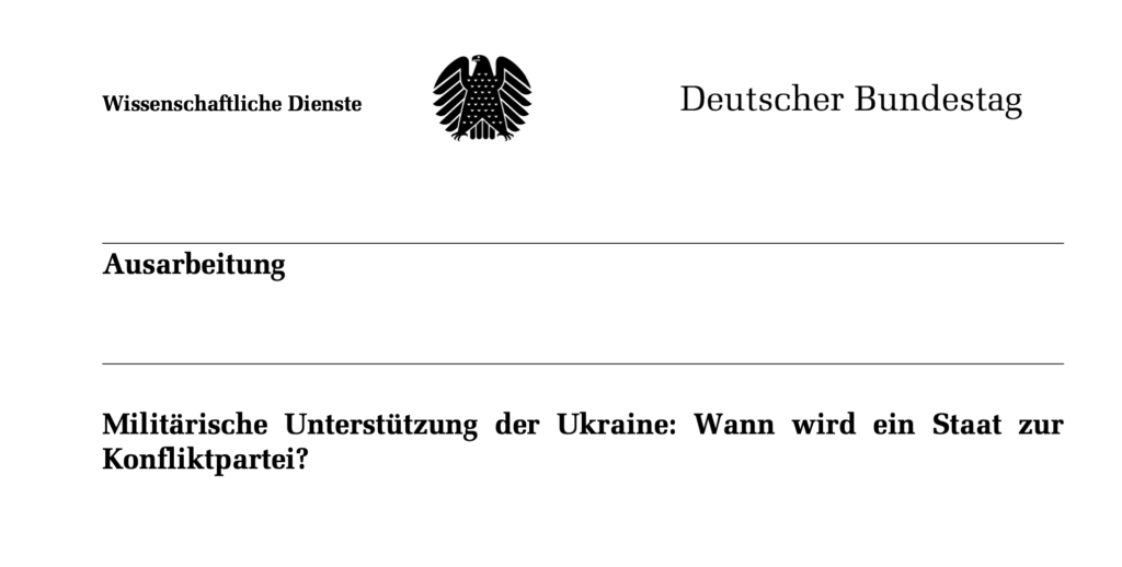 Ein Artikel von Sevim Dagdelen Die Wissenschaftlichen Dienste des Deutschen Bundestages gehen mit Blick auf die massive militärische Unterstützung der Ukraine